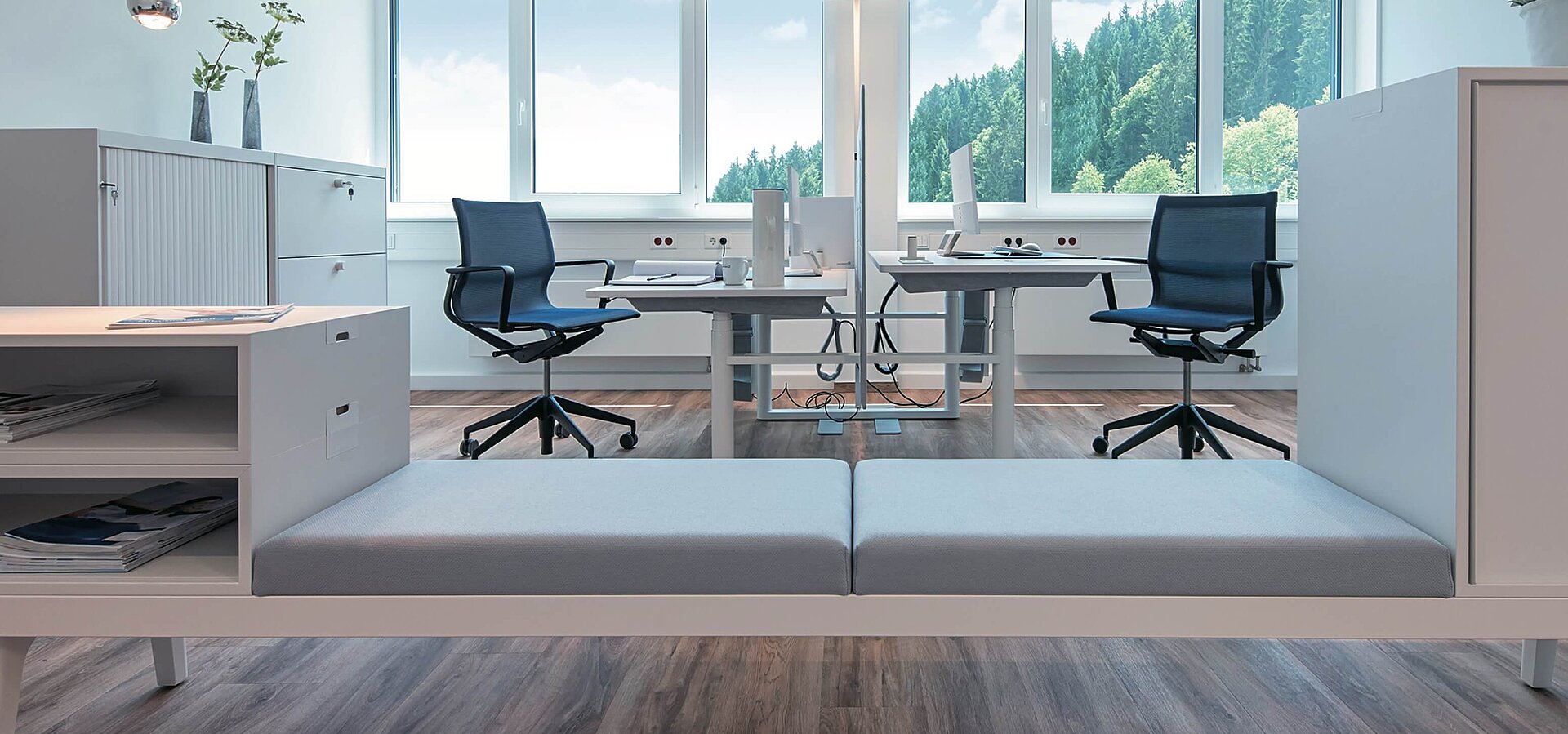 Der Raumbedarf, den Sie heute festlegen, kann sich schon in wenigen Jahren grundlegend ändern. Teamarbeit und die stärkere Flexibilisierung der Arbeitszeiten oder beispielsweise Homeoffice stellen einige Faktoren dar, die ausschlaggebend für Ihren Raumbedarf sein können. Um die notwendigen Freiräume für agiles und kollaboratives Arbeiten in modernen Arbeitswelten zu schaffen, sollte auch das Gebäudekonzept ein Optimum an Flexibilität und Wirtschaftlichkeit aufweisen. In Kooperation mit namhaften Möbelherstellern richten wir Ihr ModuLine® Gebäude nach Ihren Wünschen und Vorstellungen ein, denn gut ausgestattete Räume mit einer positiven Arbeitsatmosphäre unterstützen produktives, effizientes Arbeiten und motivieren Ihre Mitarbeiter.