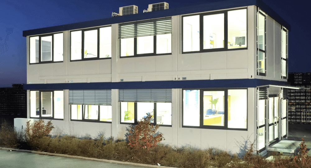 Deshalb zogen die kaufmännischen Abteilungen für die Dauer der Umbaumaßnahmen in ein Verwaltungsgebäude und das Versandbüro in ein zweites Gebäude. Beide Interimsgebäude wurden erstellt aus PLUS Mietmodulen von KLEUSBERG.