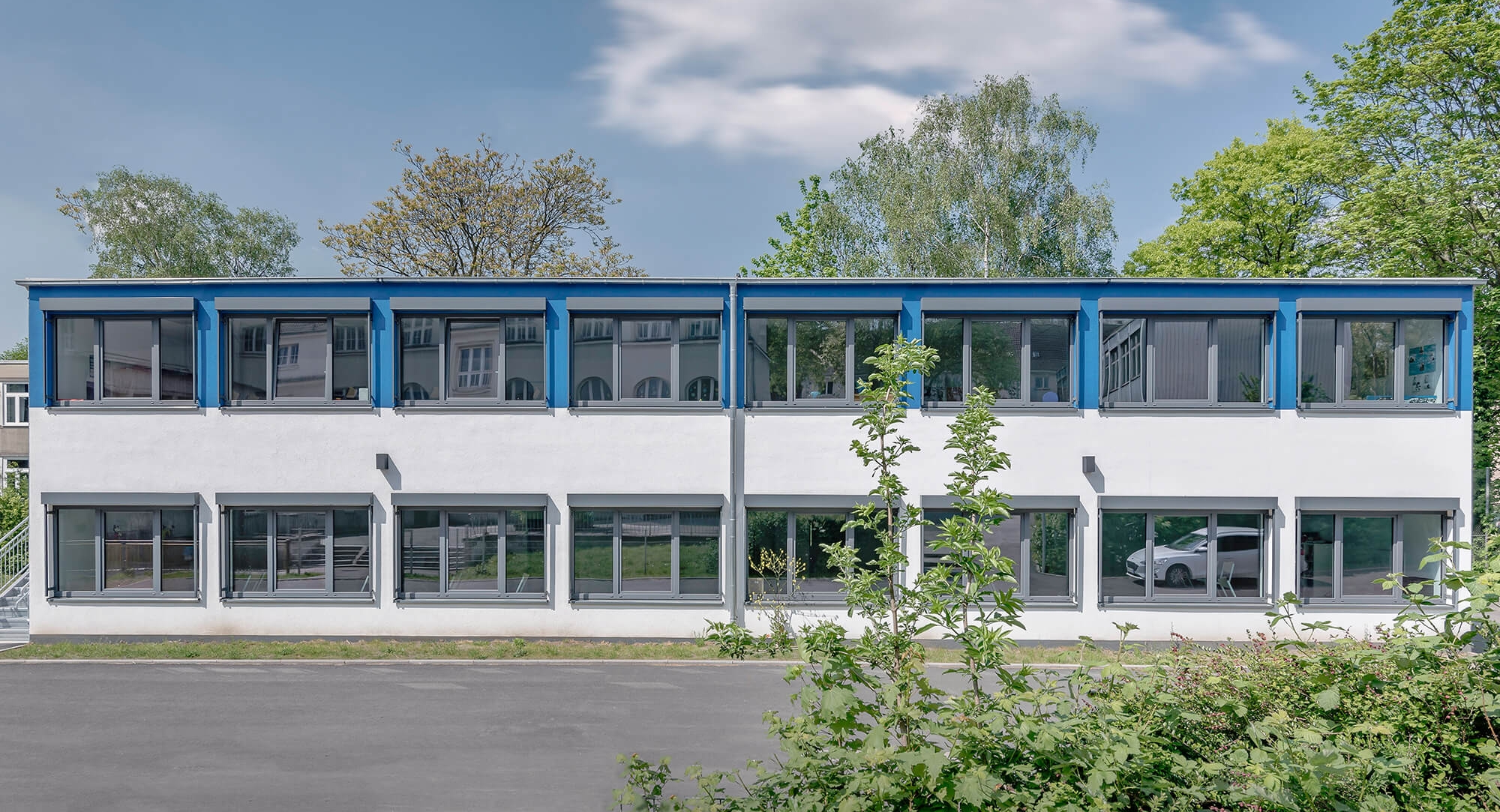 Die Realschulerweiterung stellt eine von fünf Baumaßnahmen in Essen dar, die KLEUSBERG mit dem Baukastensystem ModuLine® realisiert hat.